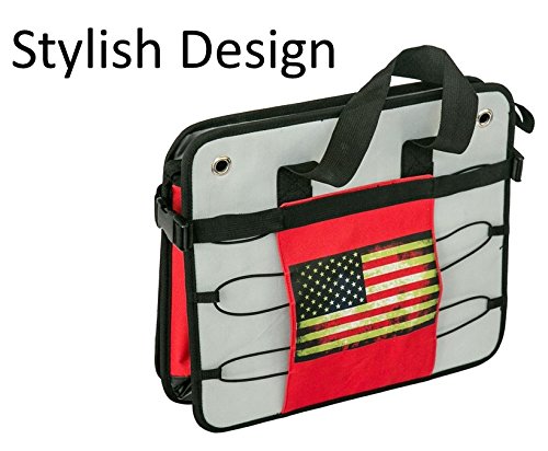 folding up. Has three separate compartments to hold everything in its place and