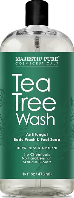 The Majestic Pure tea tree oil soap is 100% all natural which I believe is what is washing away the problem is that is stubborn. I have this fungus on one toe, one arm and part of my left leg you don’t feel it all of the time but once you shower and dry off you feel the skin that has the fungus. This Majestic Pure tea tree oil soap is a cleanser and complete body wash.