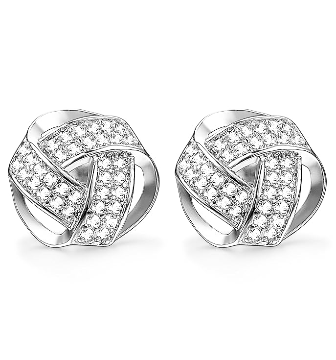 pair of stainless earrings with a love knot design with tiny Cubic Zirconia