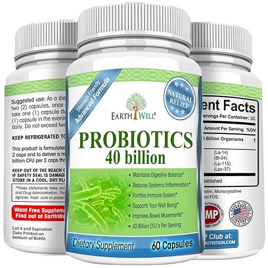 EarthWell 40 billion Probiotic Supplement for Women, Men and Children (60 Capsules)After several months of not feeling well and wanting to feel and better I believe my problem was a slow moving colon that needs you give it what it need to do the job of helping your body from the inside out. Let me just say try it for yourself and see if you don't feel better in a short period of time. You know the old saying, " It is simple stupid", well stupid applied to me and this is just swallow the pillow and drink at least 8 ounces of water behind it and you will better in a day or two. Now that I have the right supplements inside of my body doing what needs to be done for me along with eating the right foods my inside actually feel alive and better.