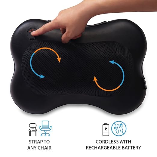 This does what I call kneading the area of pain just right you are in control of getting the pressure you want and let it be stronger or softer. This can run on batteries or electricity. When I first started to have pain my Chiropractor told me we had to get the circulation going but I was in so much pain that sounded like something I could not do. But as the time when on I understood more and more. This helps with the headaches, back and lot of the stiffness that I get. No one told me you stop moving and you will stop moving.